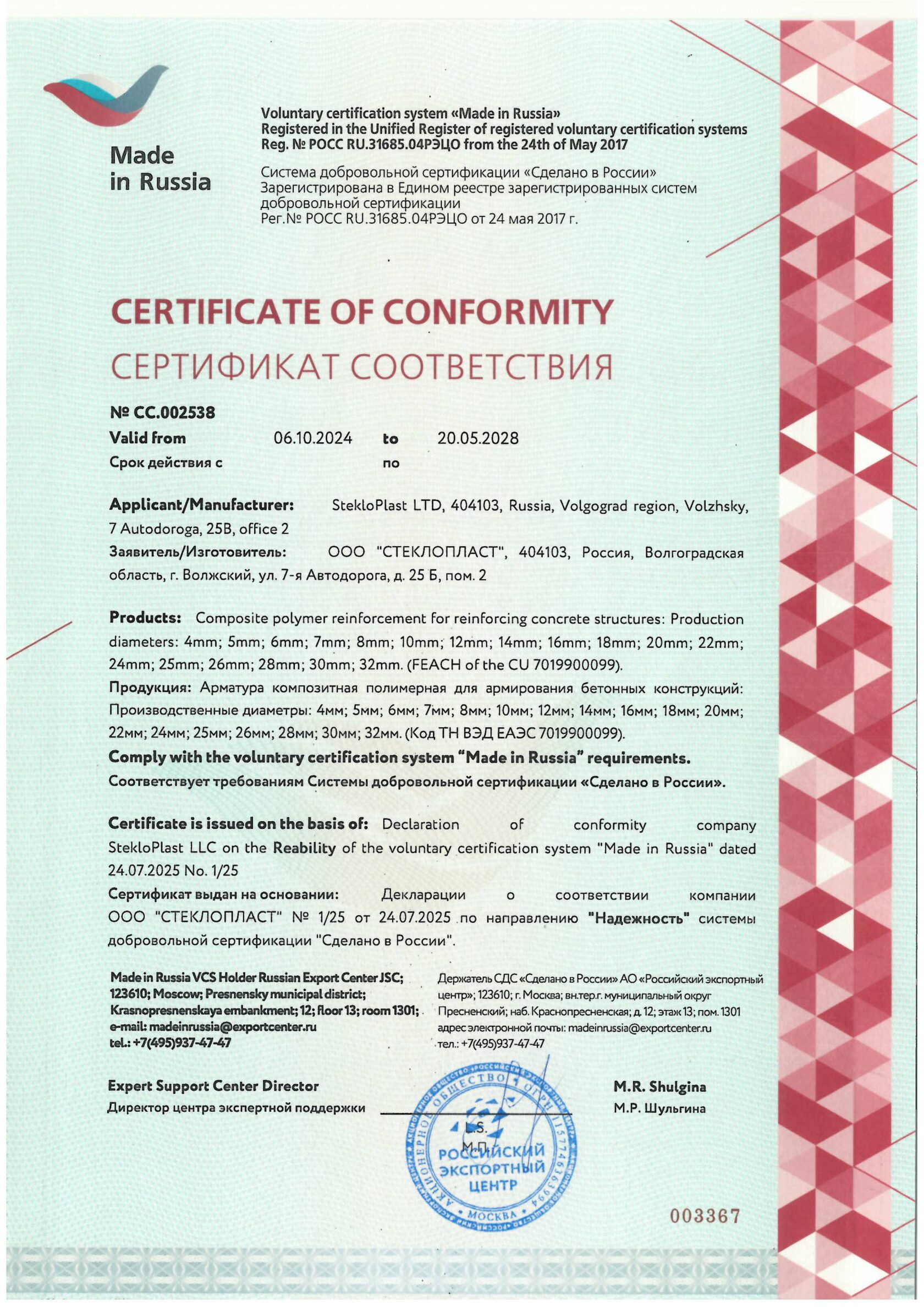 Сертификат «Сделано в России» имеет для компании «СтеклоПласт», которая занимается производством композитной арматуры, следующие преимущества: